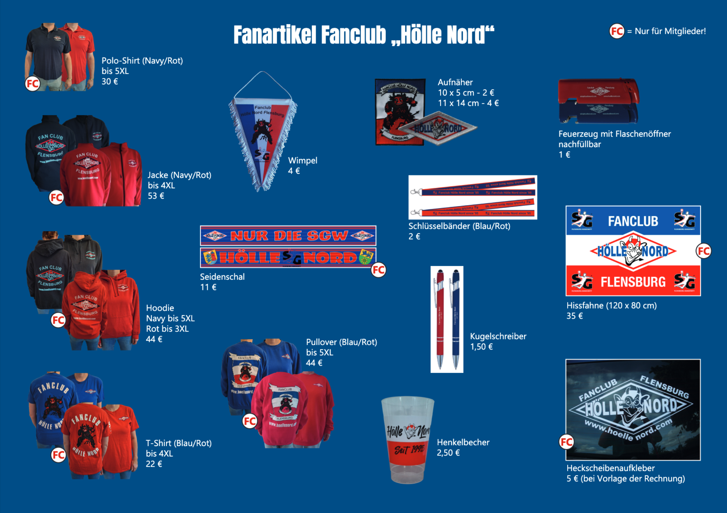 Unsere Fanartikel sind selbst gestaltet. Wir freuen uns über weitere Bestellungen, da wir ob Heim oder Auswärts gerne gemeinsam auftreten möchten.